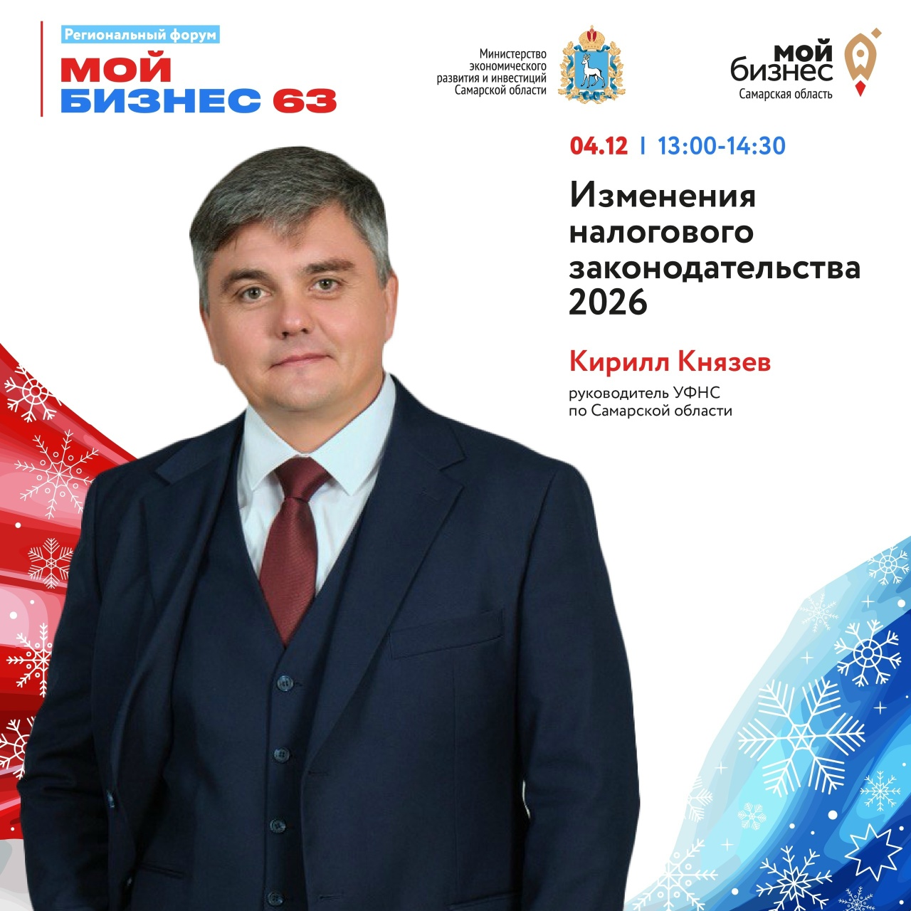 Это нужно знать каждому предпринимателю! 4 декабря расскажем о налоговых изменениях 2026 года на региональном форуме «Мой бизнес 63»