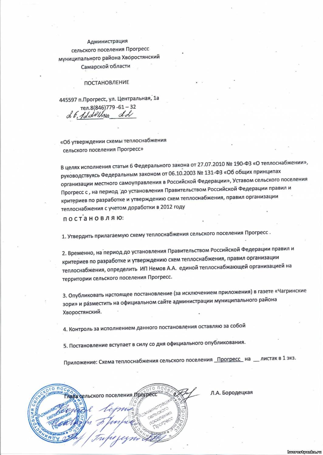 Об утверждении схемы теплоснабжения сельского поселения Прогресс